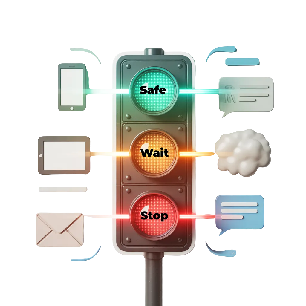 Clear, Non-Techy Answers: Color-coded Trust Signals: Go, Wait, Stop.